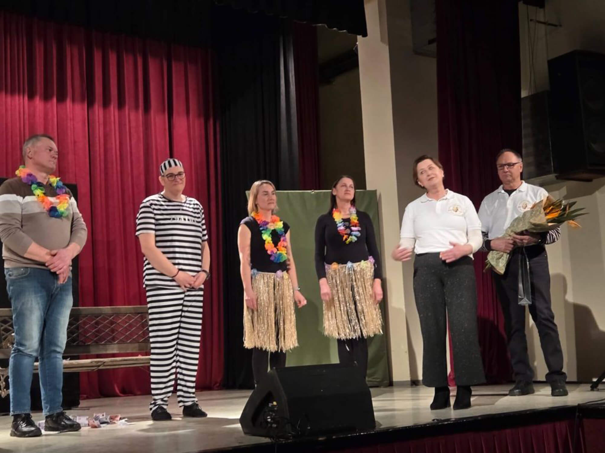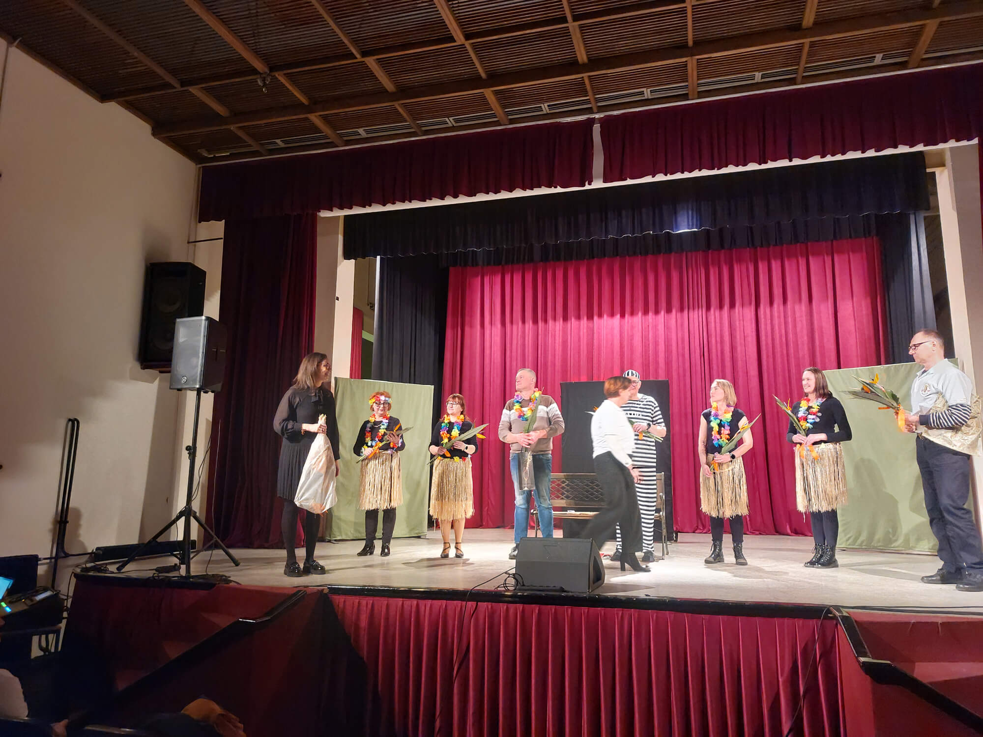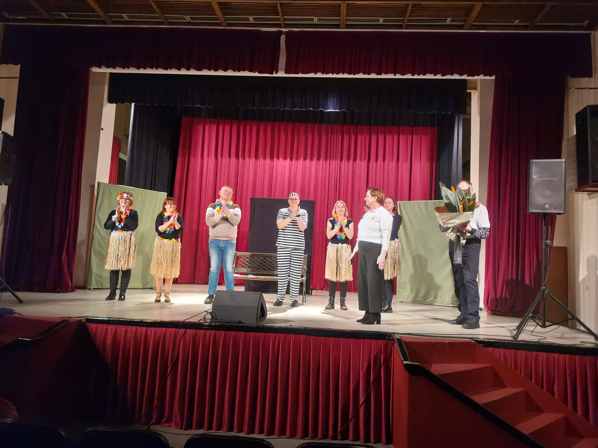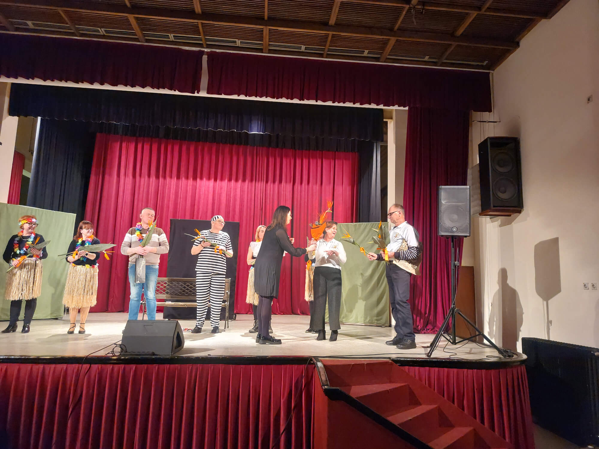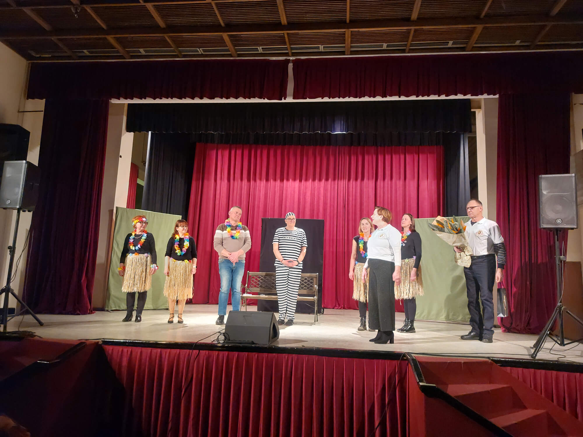 Soboto 21. februarja, 2026 Ob praznovanju 20. letnice delovanja društva smo v dar dobili igro Pravi Guru za dame od Kulturnega društva Črneče. Na seji UO smo se pogovorili, da bomo prispevke od kart podarili v Šolski sklad OŠ Gornja Radgona. Radi naredimo nekaj dobrega za našo skupnost in ker nam je praznovanje 20.letnice društva uspelo smo se odločili biti dobrodelni, ker dobro se z dobrim vrača. V sodelovanju z KULPROTUR smo se dogovorili za kinodvorano, ki so nam jo podarili. Potrudili smo se in zopet nam je uspelo napolniti kinodvorano. Ponujali  smo karte za priporočeni znesek 5€ in zbrali 1.235, € ki smo ga podarili v šolski sklad. Igralci so čudovito odigrali igro, mi pa smo jih pogostili z narezki in druženjem. Naše članice in zaposlene na OŠ Gornja Radgona so spekle veliko peciva, da smo vse obiskovalce pogostili  s pecivom in domačo kapljico, ki so nam jo podarili naši vinarji.